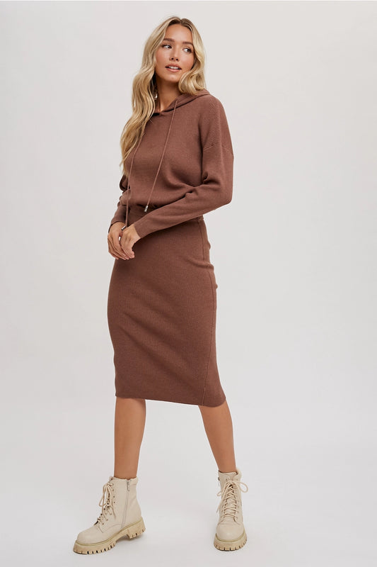 Ribbed Sweater Hoodie Dress