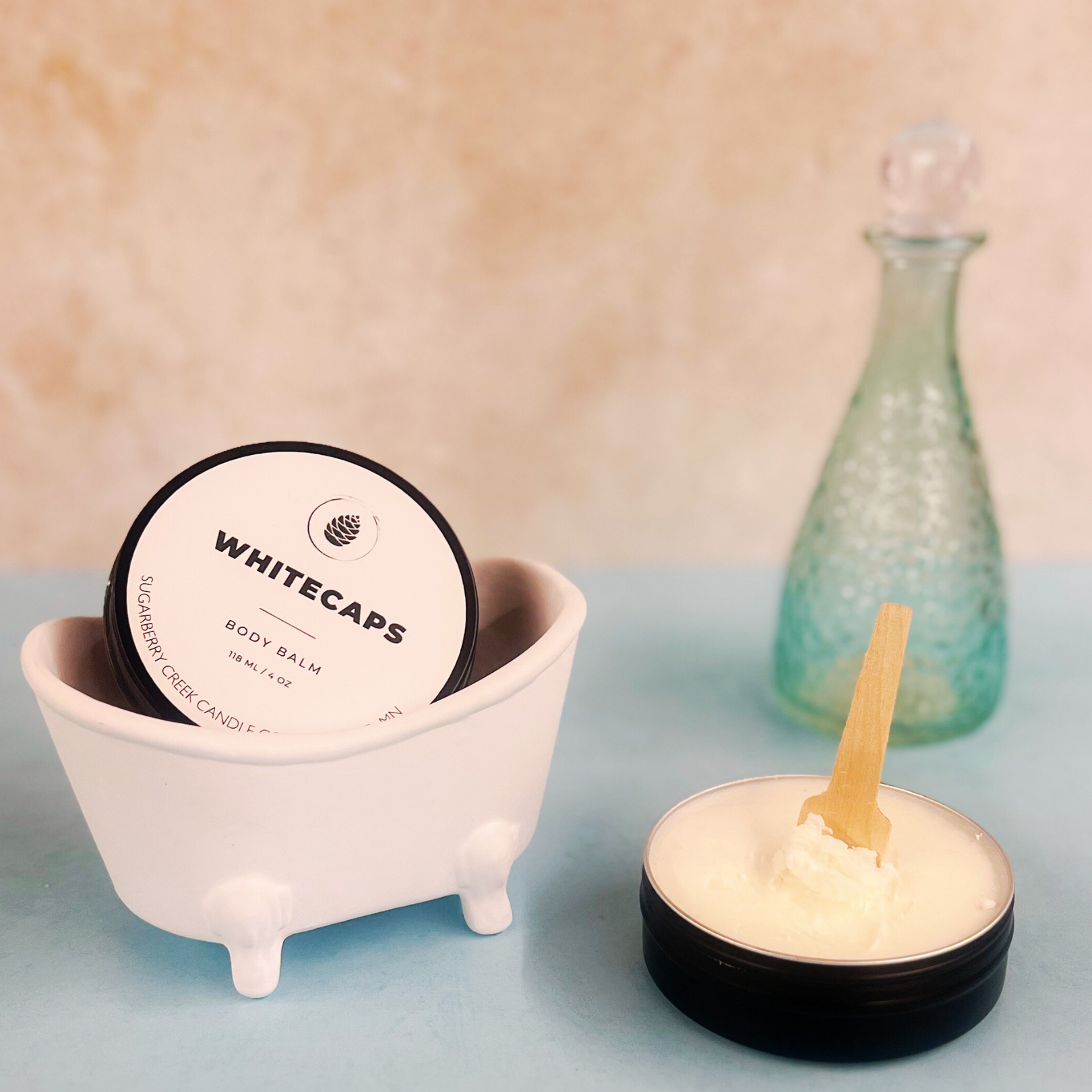 Body balms are a great way to moisturize your skin from hands to heels, especially during dry winter months! Our hand-poured balm is solid at room temperature, but when warmed from your skin, it will melt and deeply moisturize.