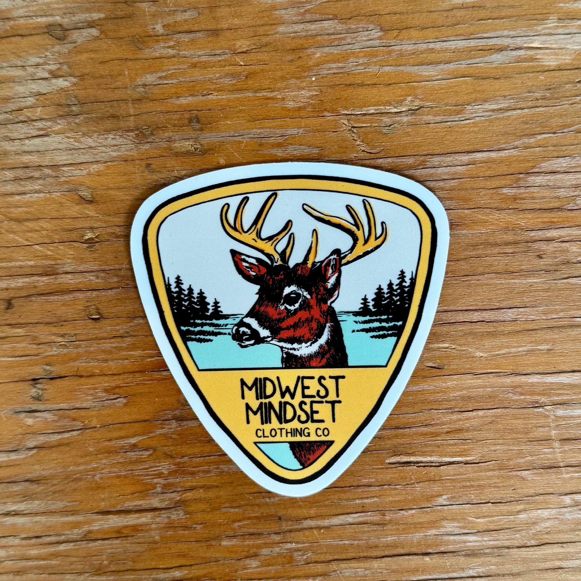 Embrace the north woods vibes with our premium vinyl Deer Camp Sticker. This badge-shaped sticker features a white tailed deer and pairs perfectly with our matching t-shirt. Add a touch of quirk to your gear! (T-shirt not included, sorry!)