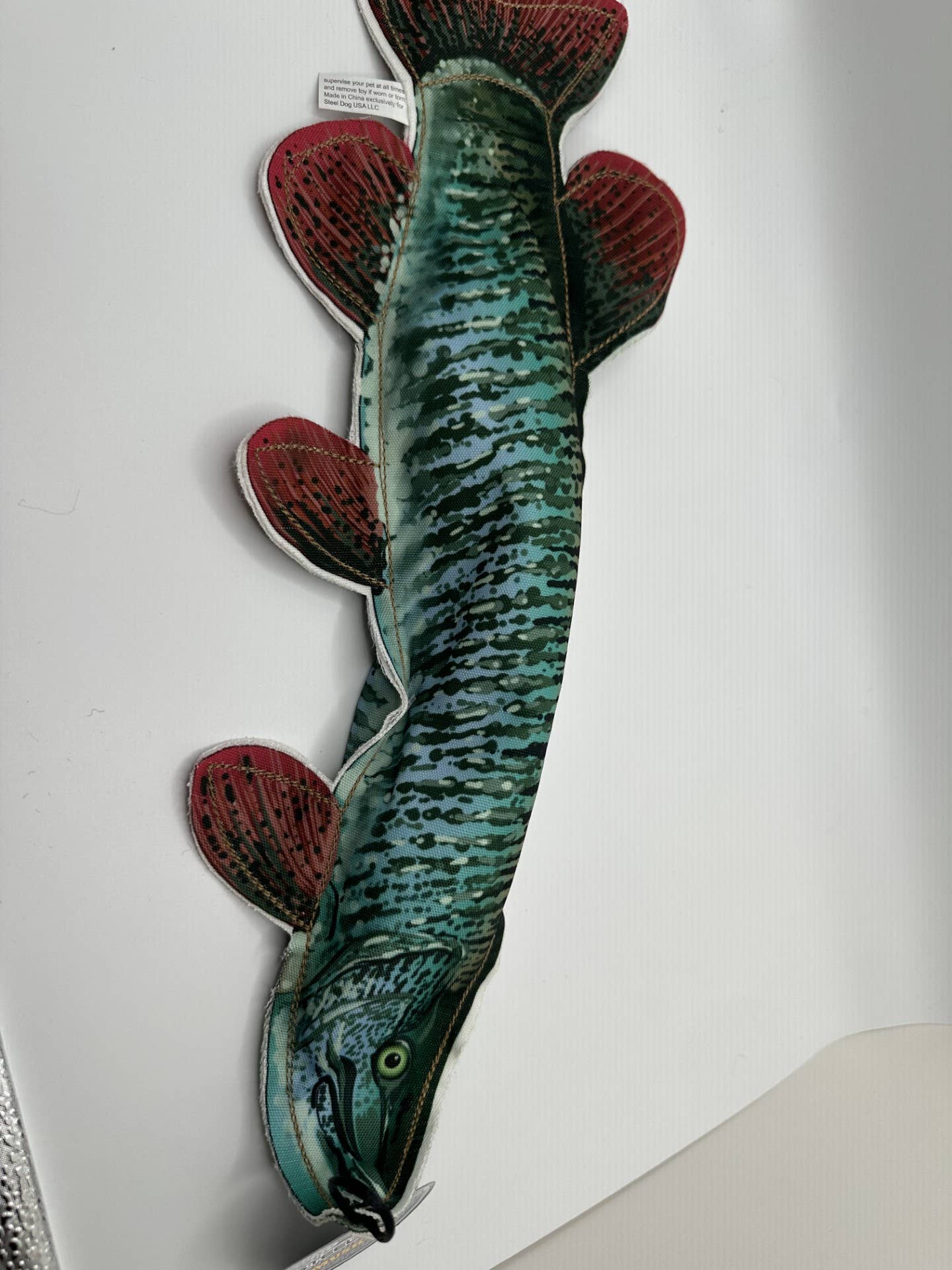 With a realistic print and durable body with rope inside, this Denim Muskie will be your dog’s second favorite fishing buddy. Inside includes a squeaker, but no stuffing for less of a mess. Denim Fish have a Tough Chew-o-Meter rating. Even if they do make it through the seams, another toy is ready to play!