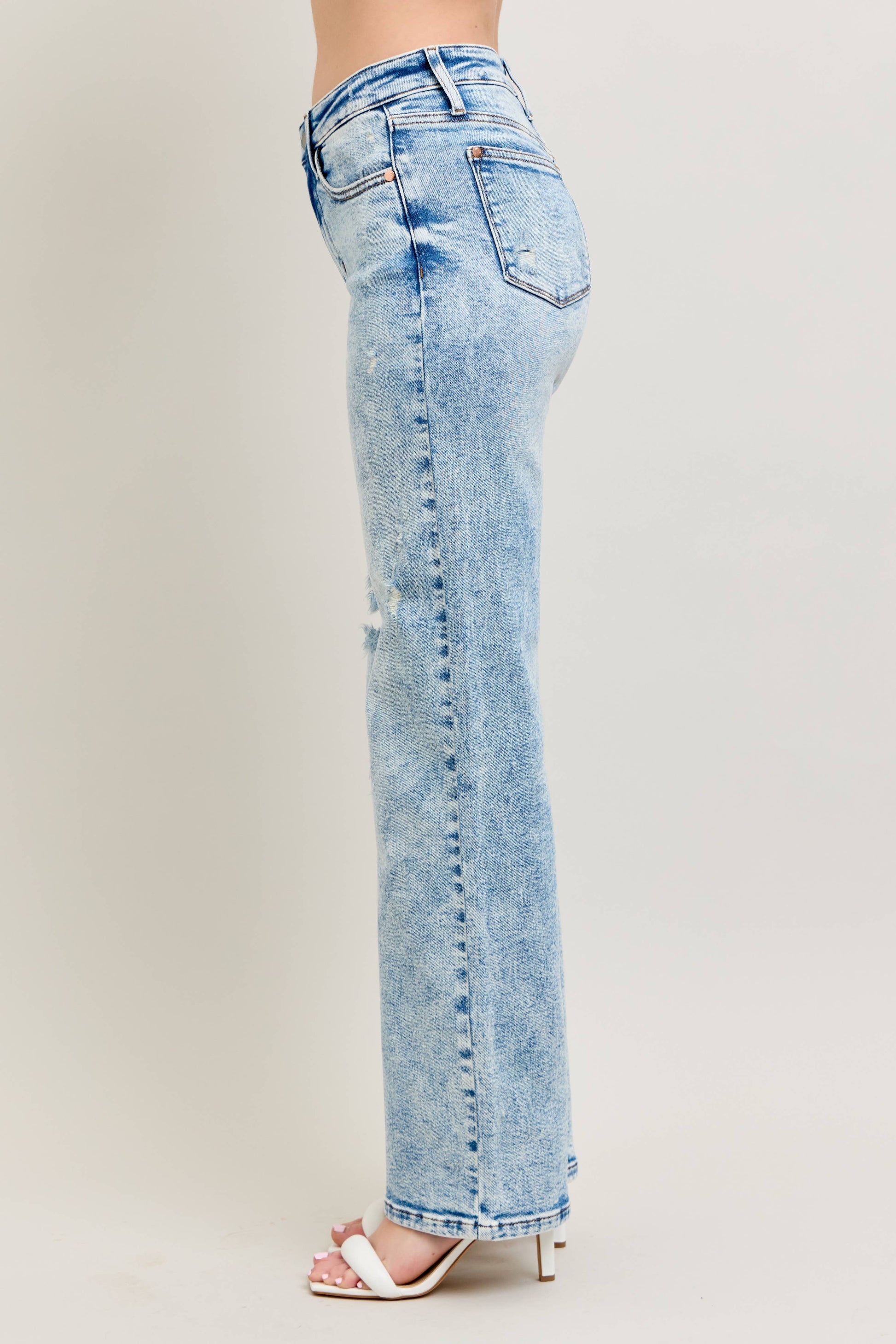 Experience the perfect blend of comfort and style with the Destroy the 90's Straight jeans. Featuring a soft mineral wash and a relaxed fit, these high-waisted jeans offer a flattering silhouette while ensuring all-day comfort. Ideal for those who want to embrace vintage vibes without sacrificing modern ease.