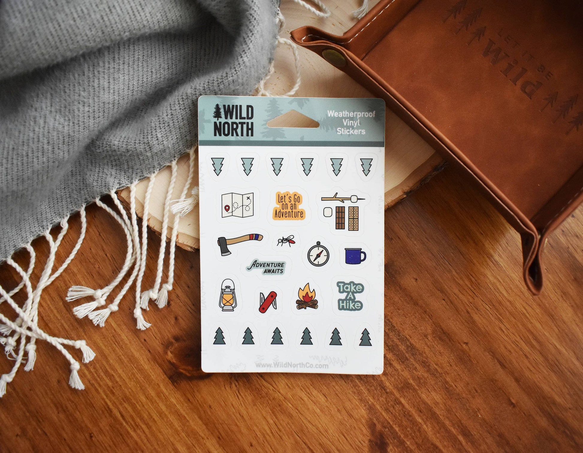 This Mini Camping Sticker Sheet includes 24 stickers all under 1.25 inches. And because they're weatherproof, they're perfect for filling in between your other larger stickers on your water bottle, laptop, or cooler!